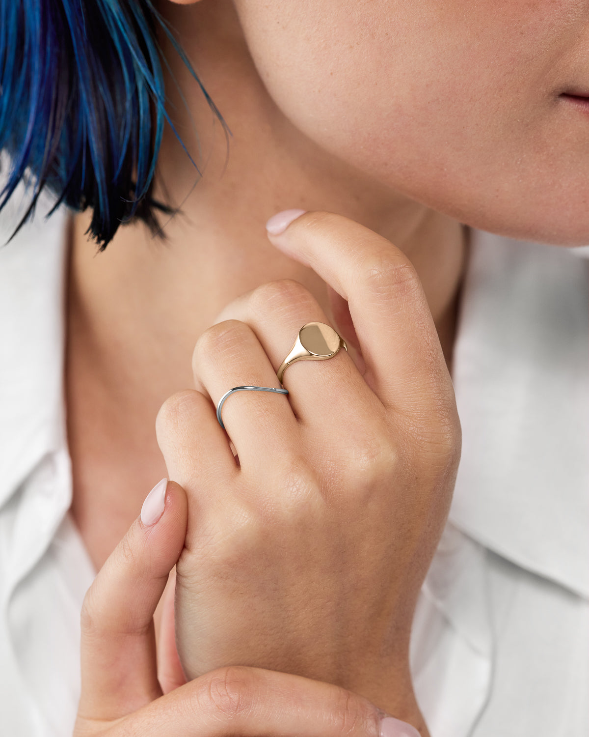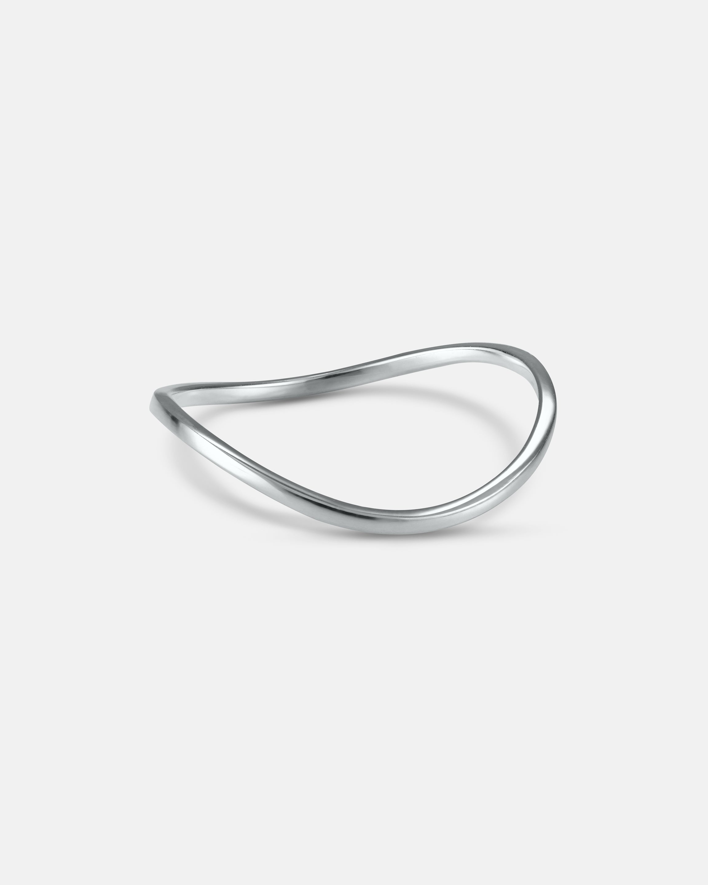 The Flow Ring evokes a sense of motion and continuity, contrasted by its rigid form.