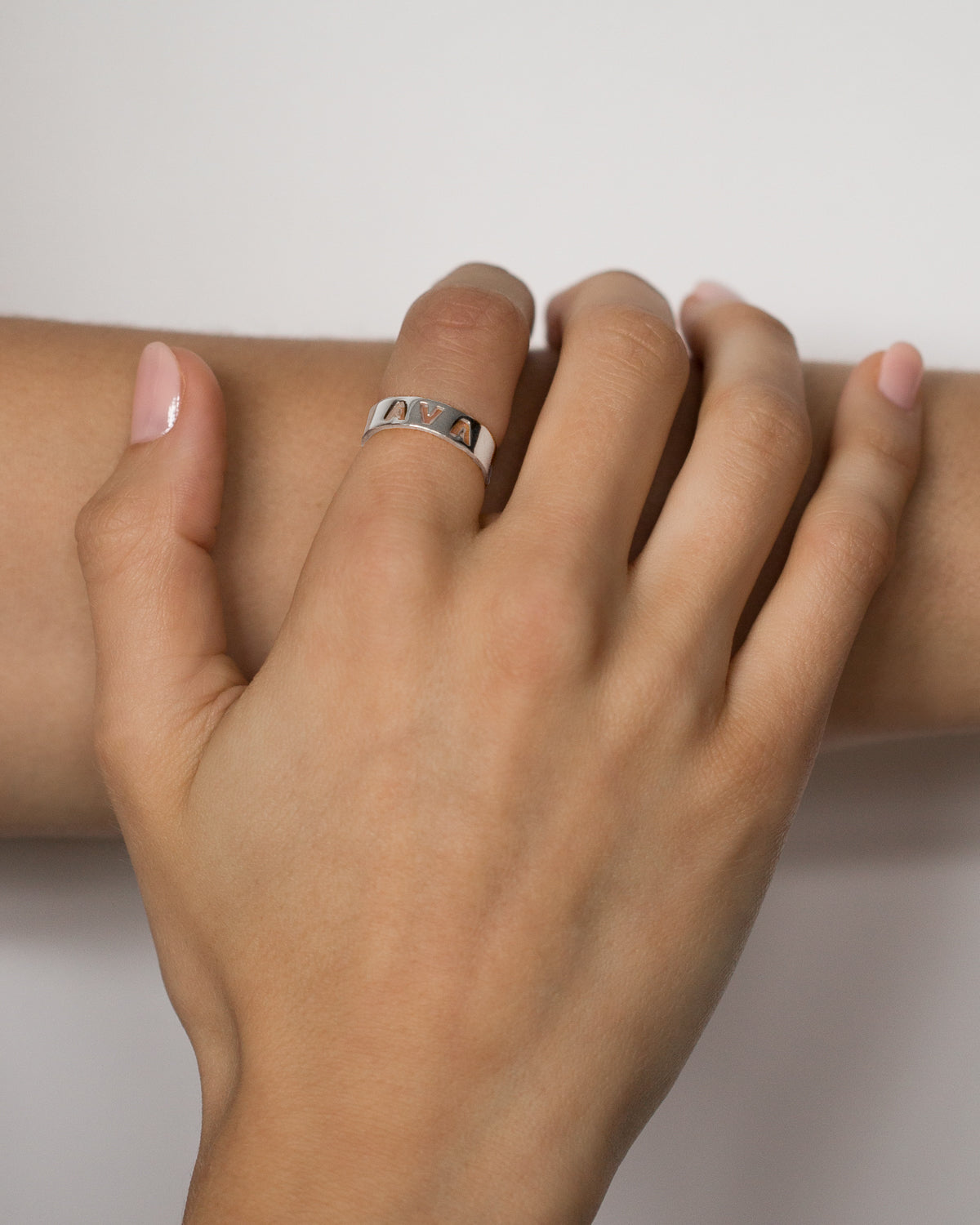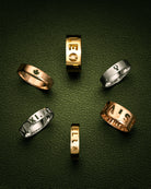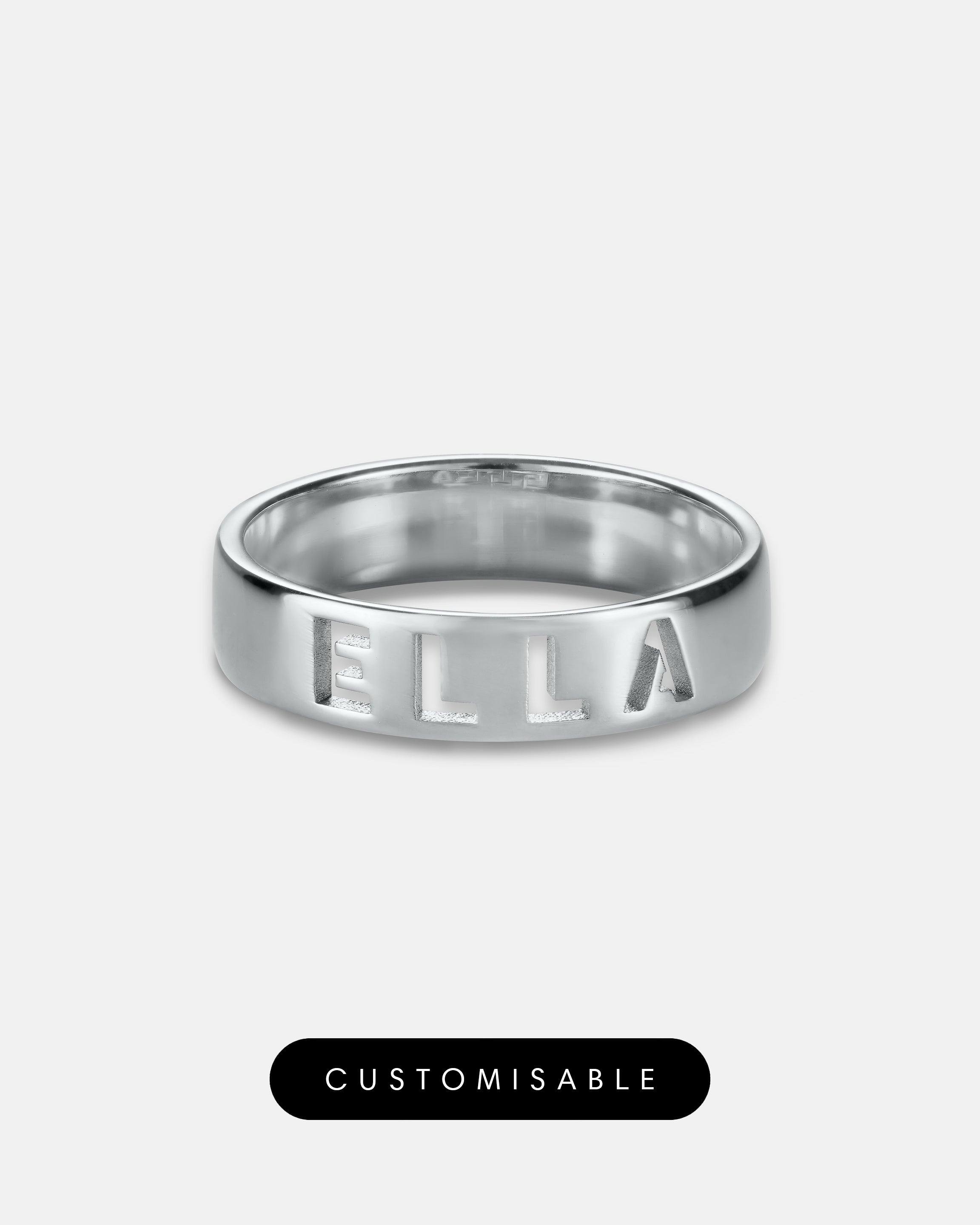 The Letter Ring collection, available in "Mini" and "Wide" (approximately 4.3mm and 7.3mm widths respectively), uses negative space allowing you to create a one of a kind piece for yourself or as a personalised gift.