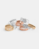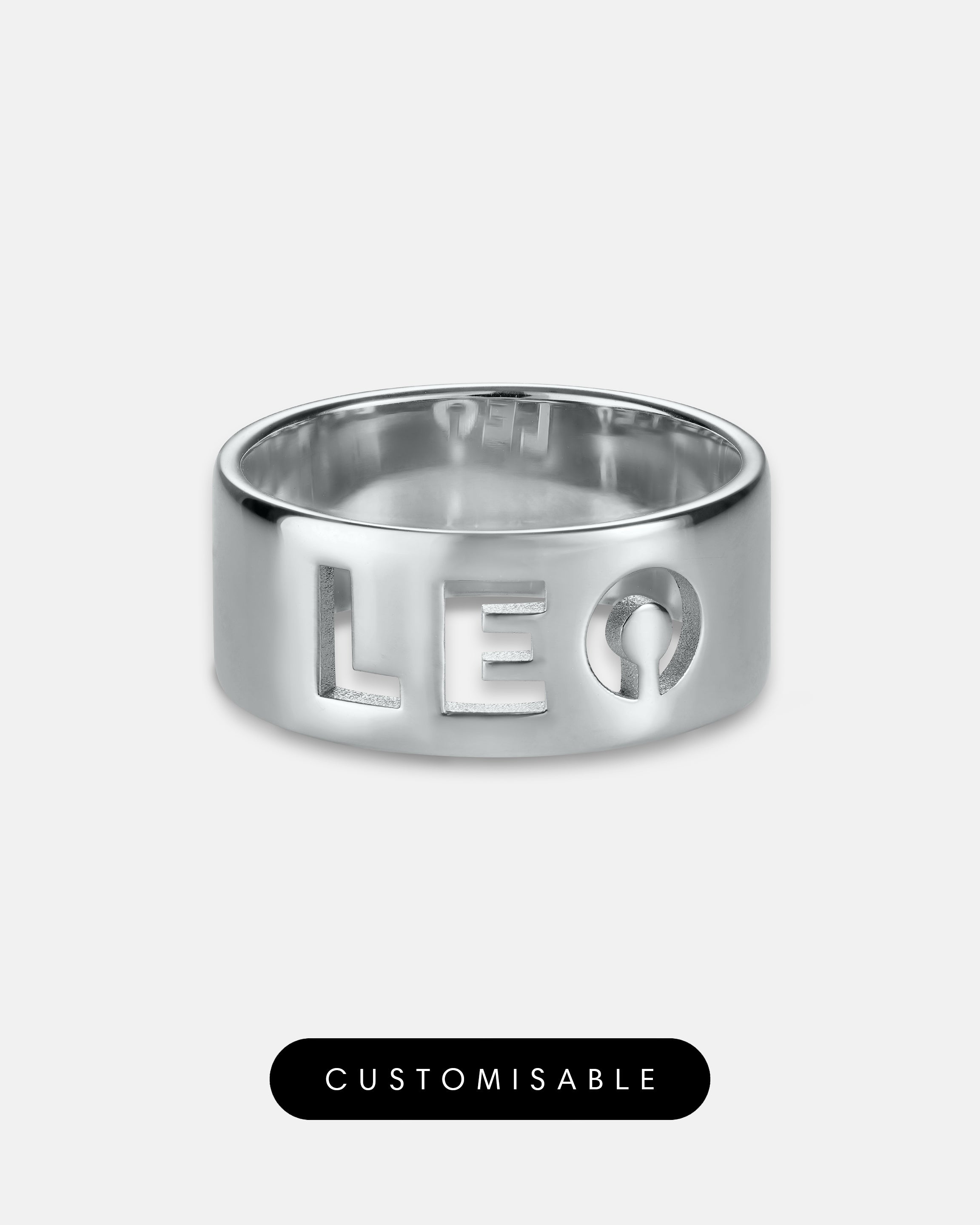 The Letter Ring collection, available in "Mini" and "Wide" (approximately 4.3mm and 7.3mm widths respectively), uses negative space allowing you to create a one of a kind piece for yourself or as a personalised gift.