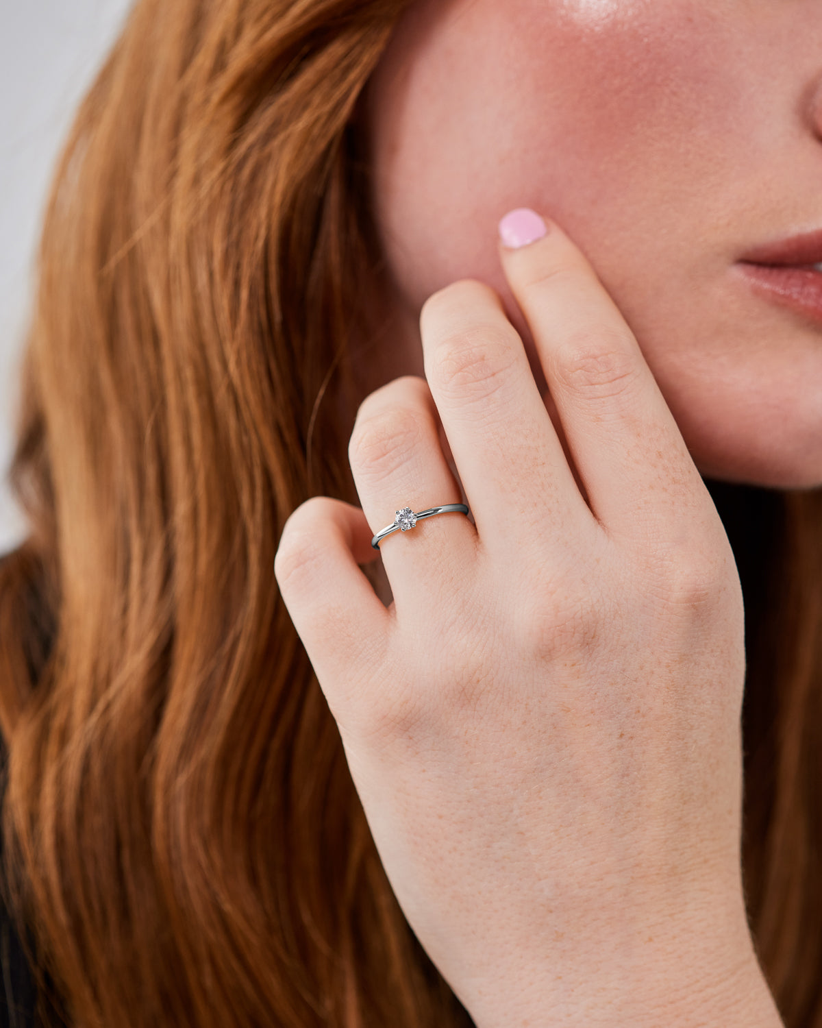 The Engagement Ring pictured features a 0.30ct round brilliant cut white diamond.