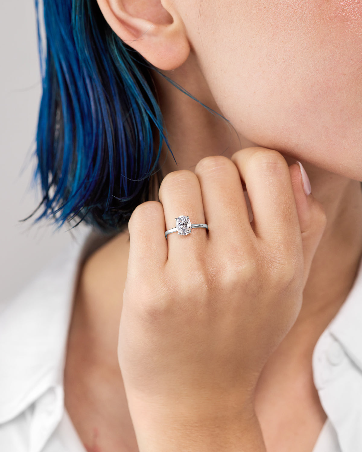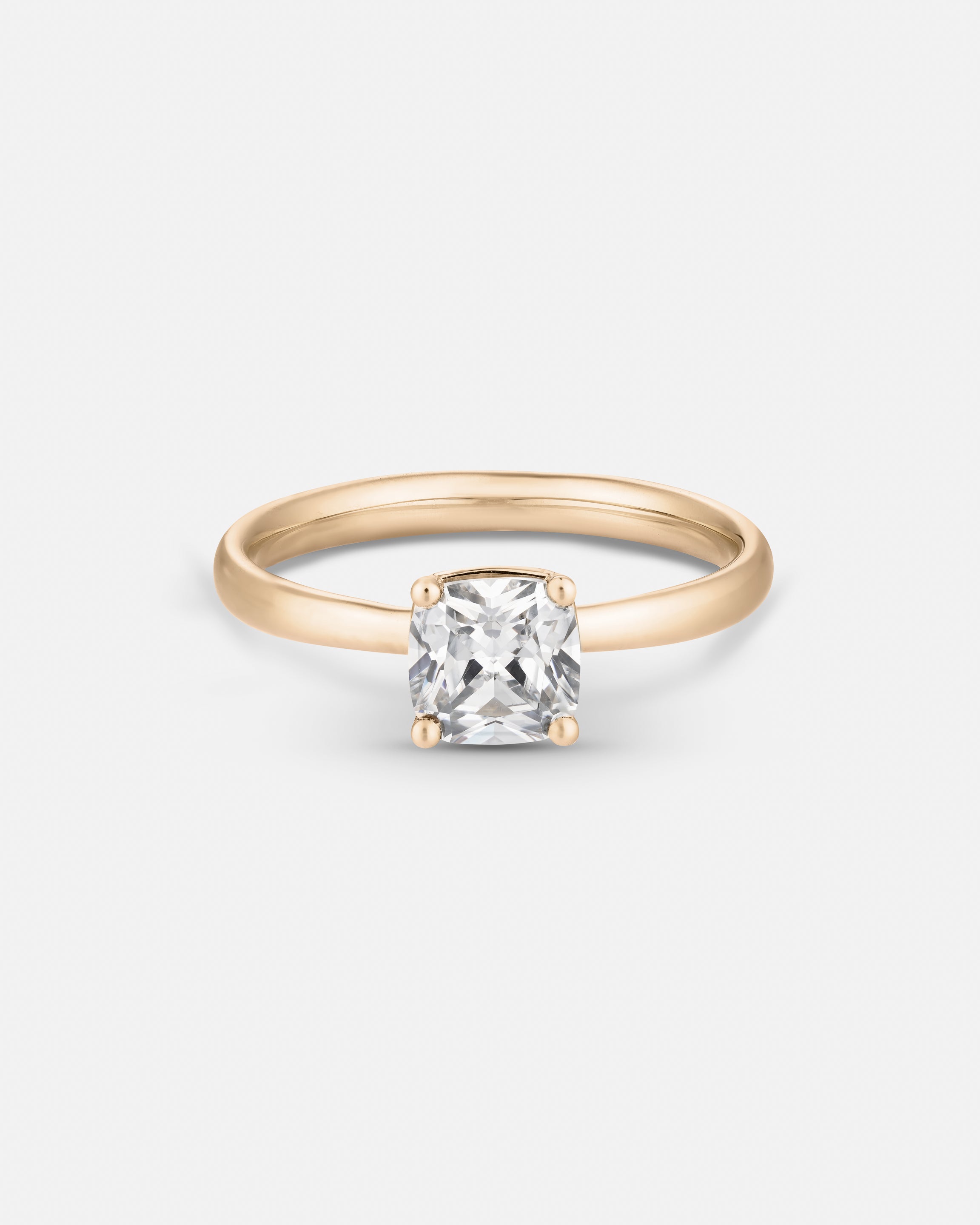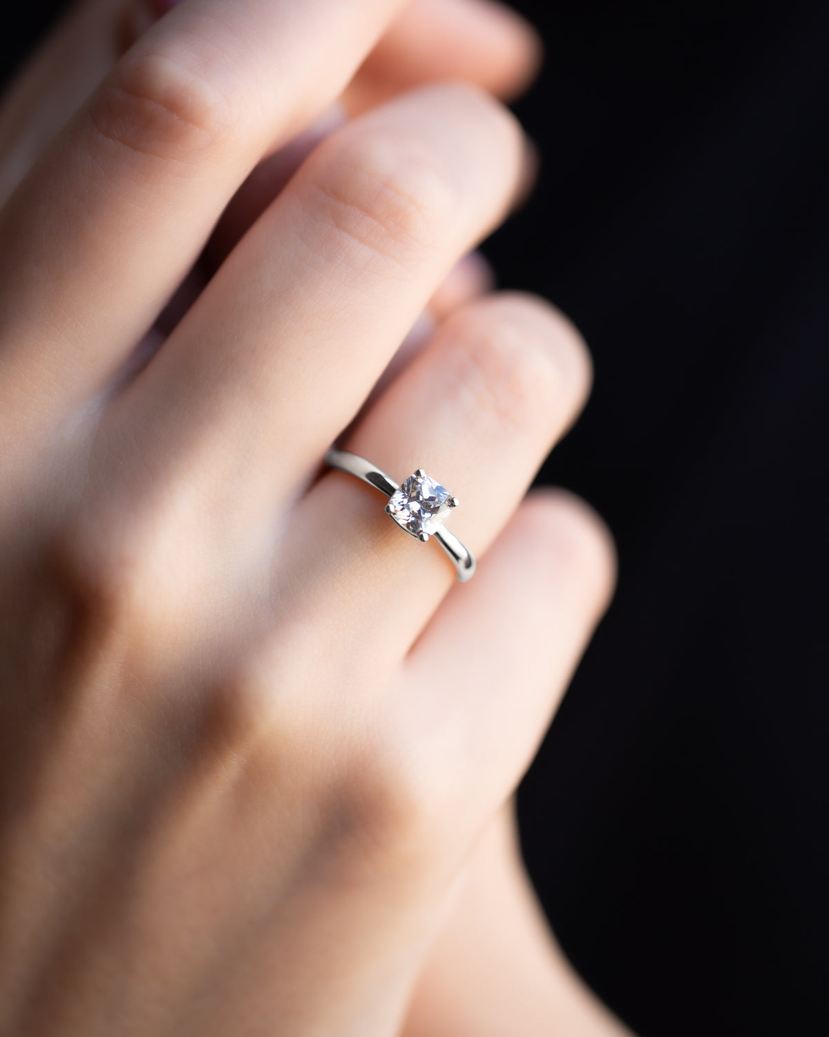 The Cushion Engagement Ring, embracing the soft allure of a cushion cut diamond, where classic charm blends seamlessly with contemporary grace.