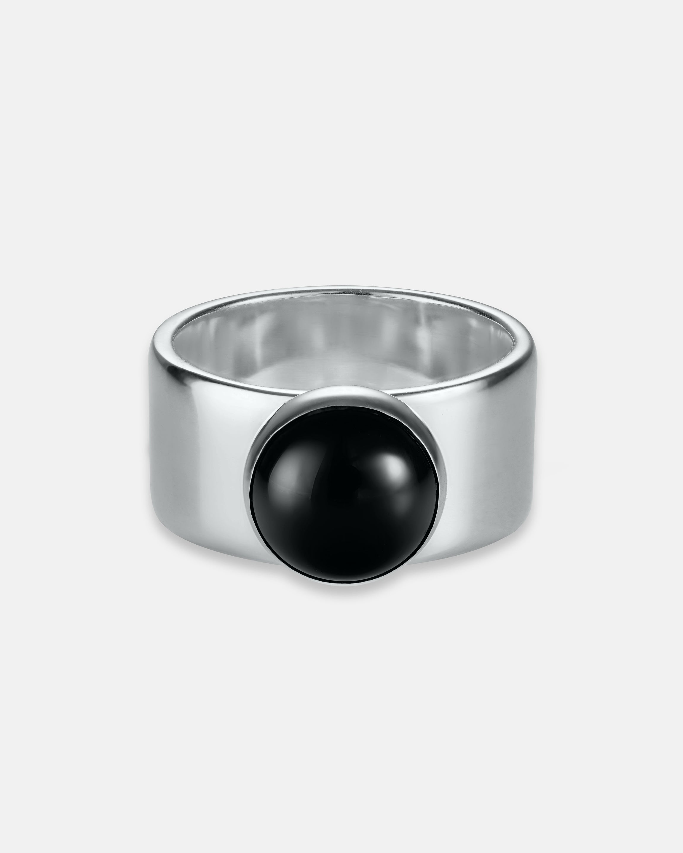 Made as a collaboration between Christopher Esber and WILLIAM ÉDOUARD for Mercedes-Benz Fashion Week Australia (MBFWA), the Dome Ring is an elegant flat band adorned by a single black onyx cabochon.