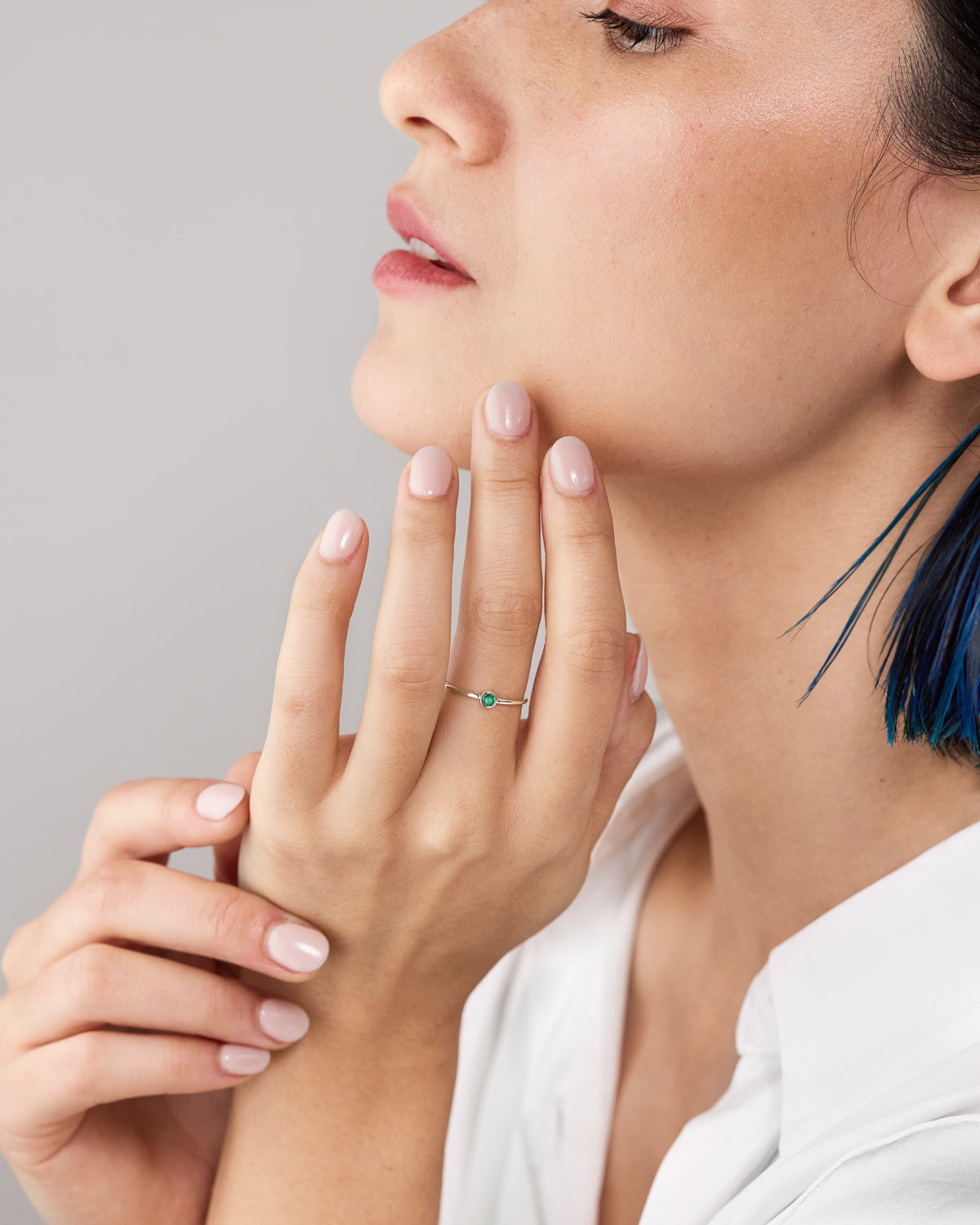 The May Birthstone Ring features a precious lab-grown emerald, symbolising rebirth, foresight, and good fortune.